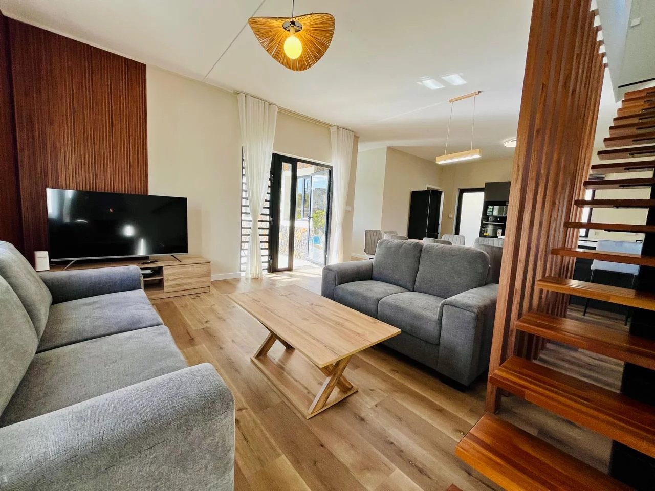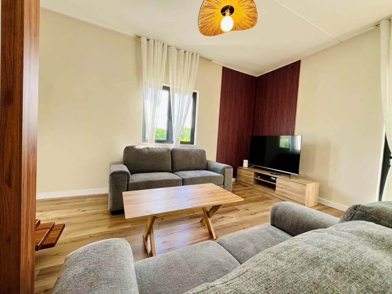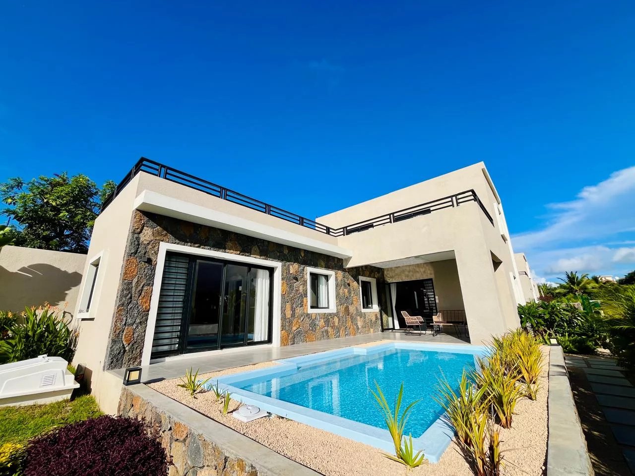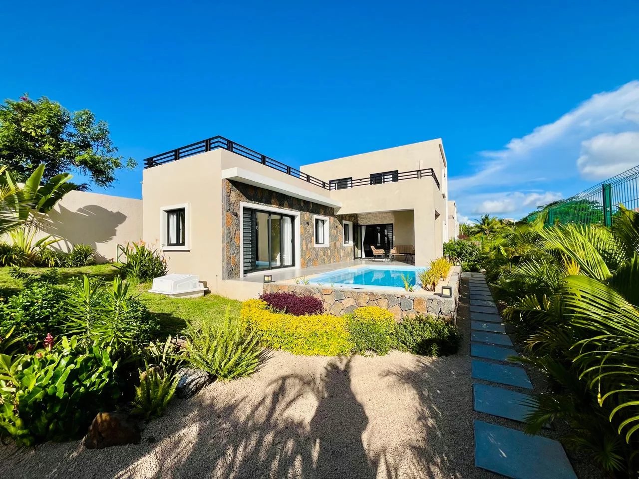 These magnificent new villas for rent each offer 180 m² of living space and combine comfort, elegance, and modernity. Villas 1, 2, and 3, built on plots of approximately 380 m², feature three bedrooms, including one en-suite bedroom on the ground floor and two bedrooms upstairs, as well as a private pool and access to a large 2,100 m² shared garden.