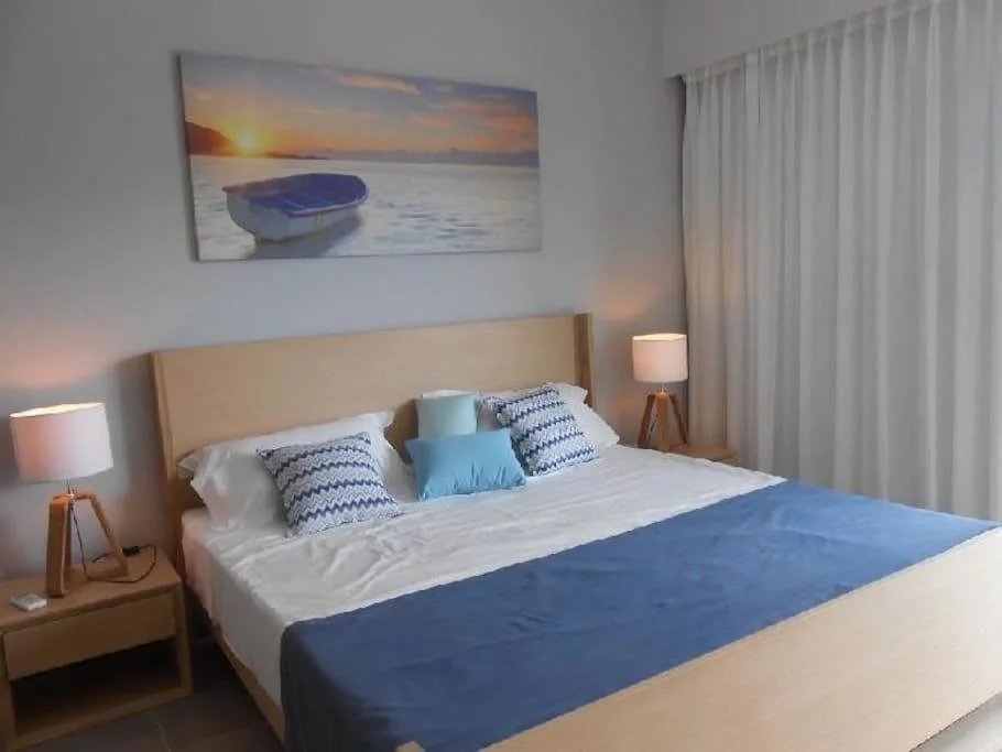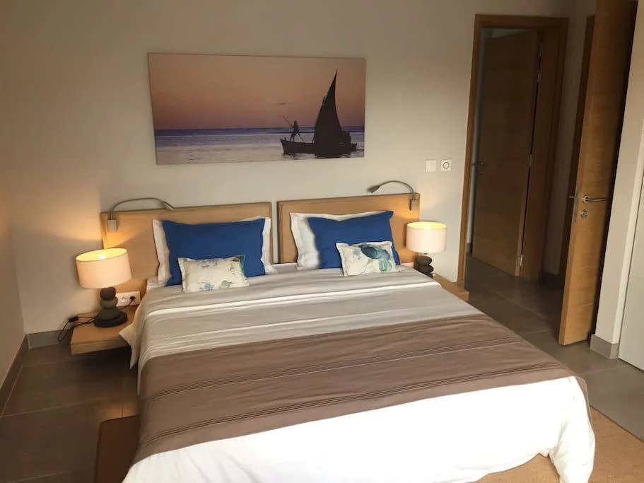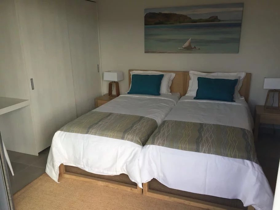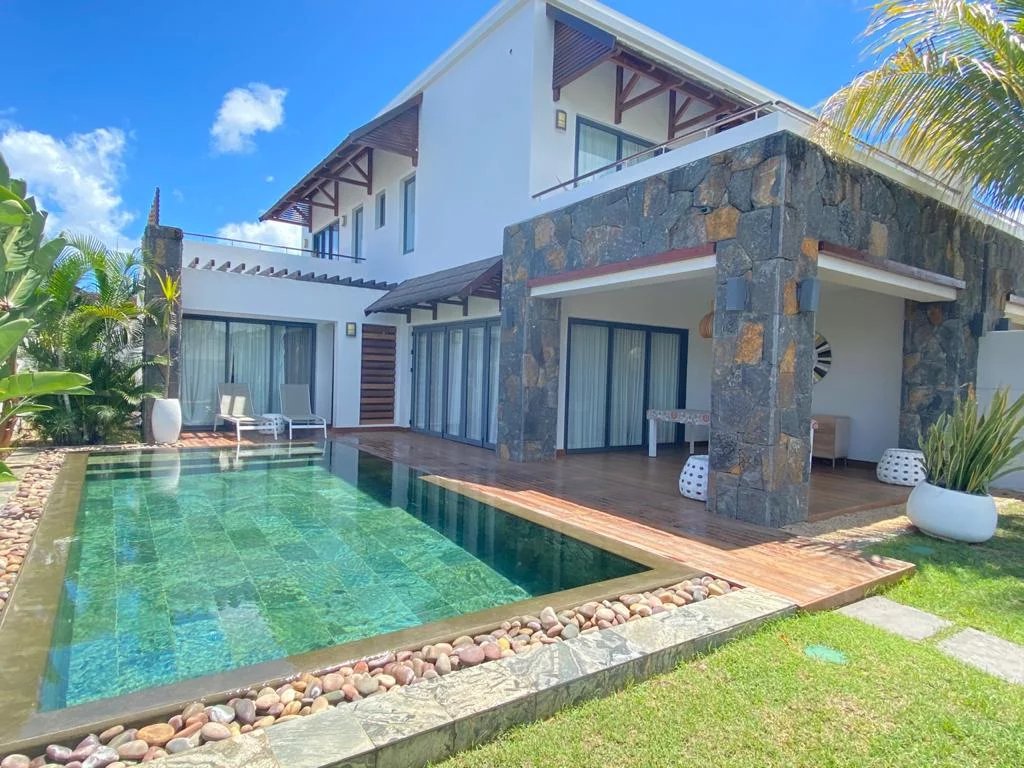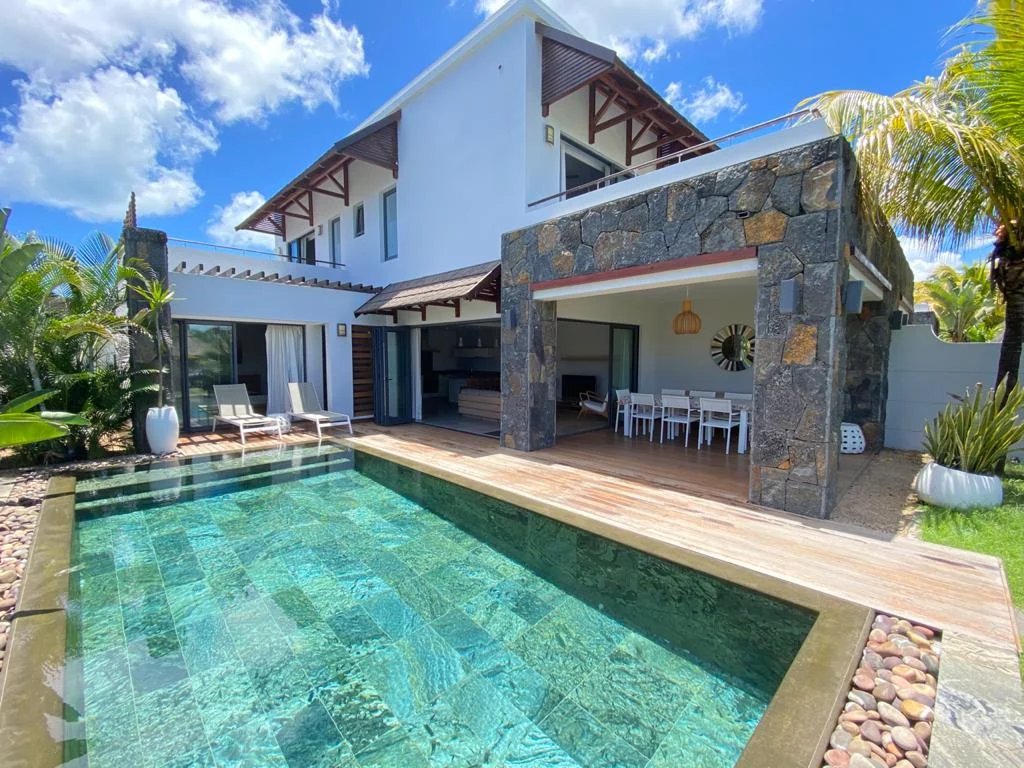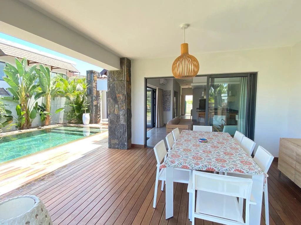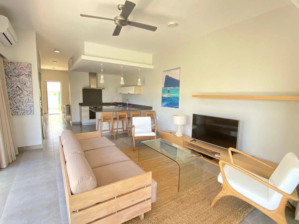 The exterior includes a private slate swimming pool, a wooded garden and parking spaces at your disposal. Residents also have access to the large communal swimming pool measuring about 2,500 m2, the restaurant and the gym. Close to Mont Choisy beach.