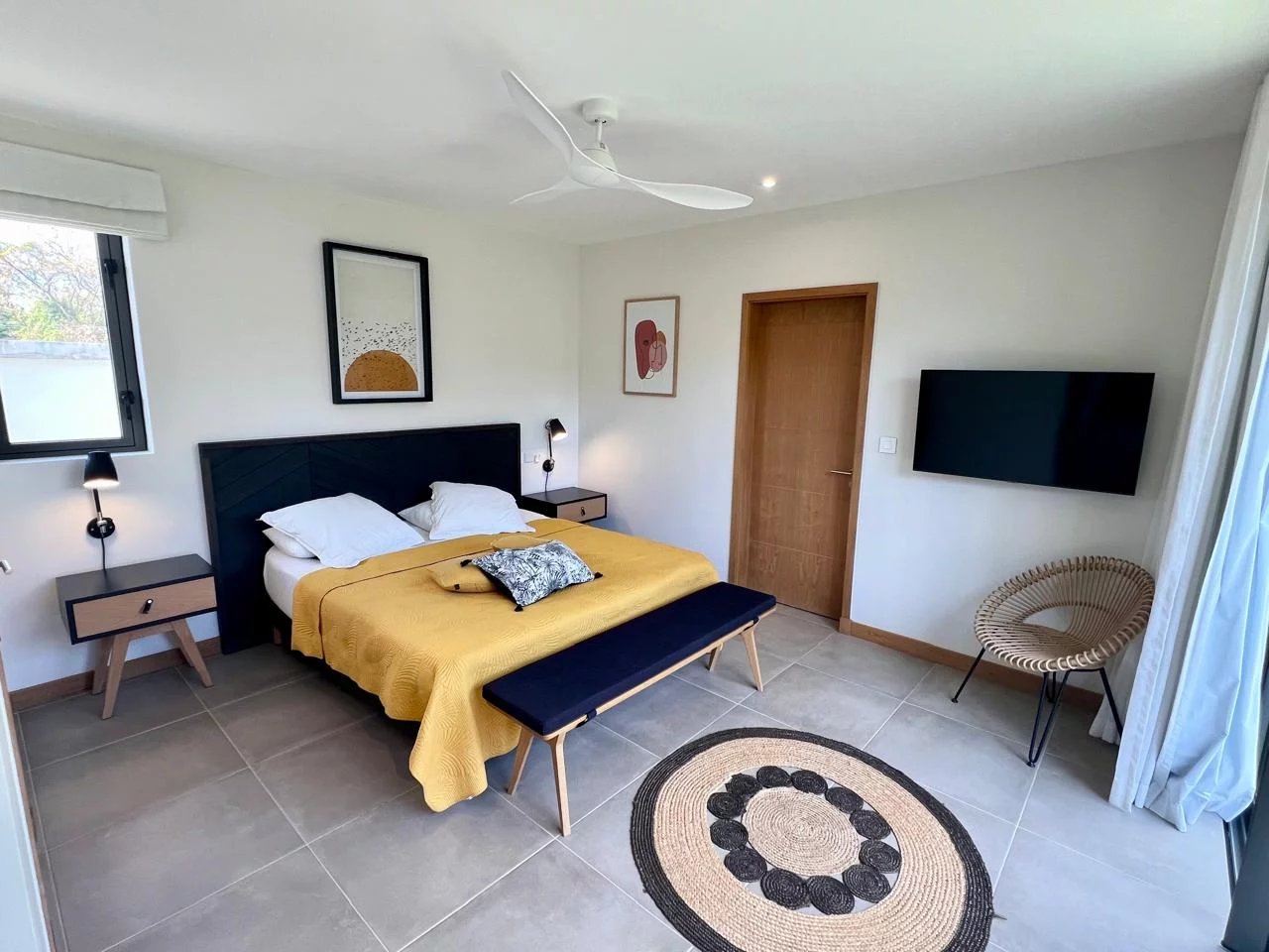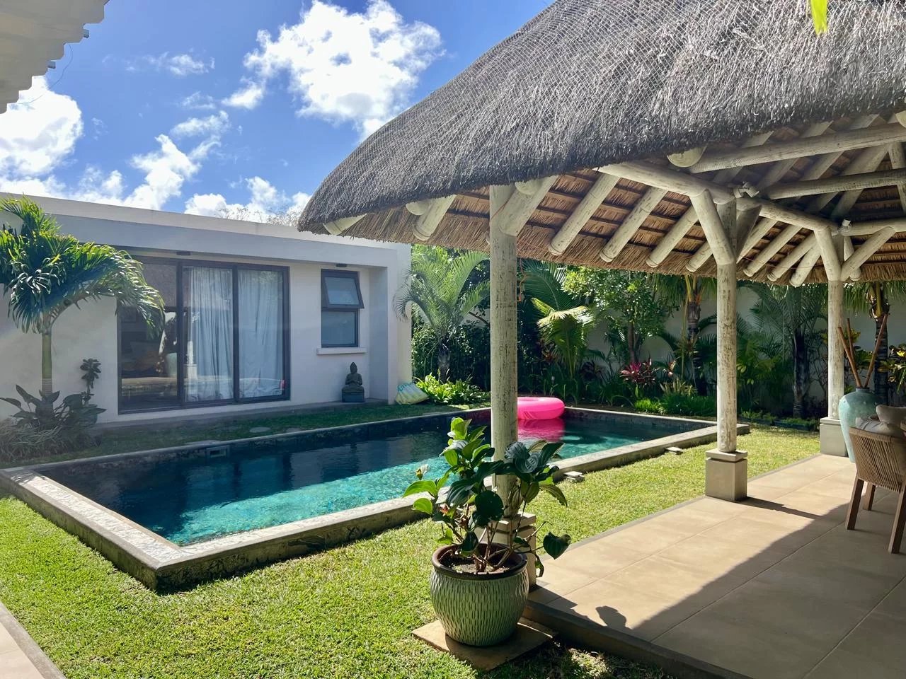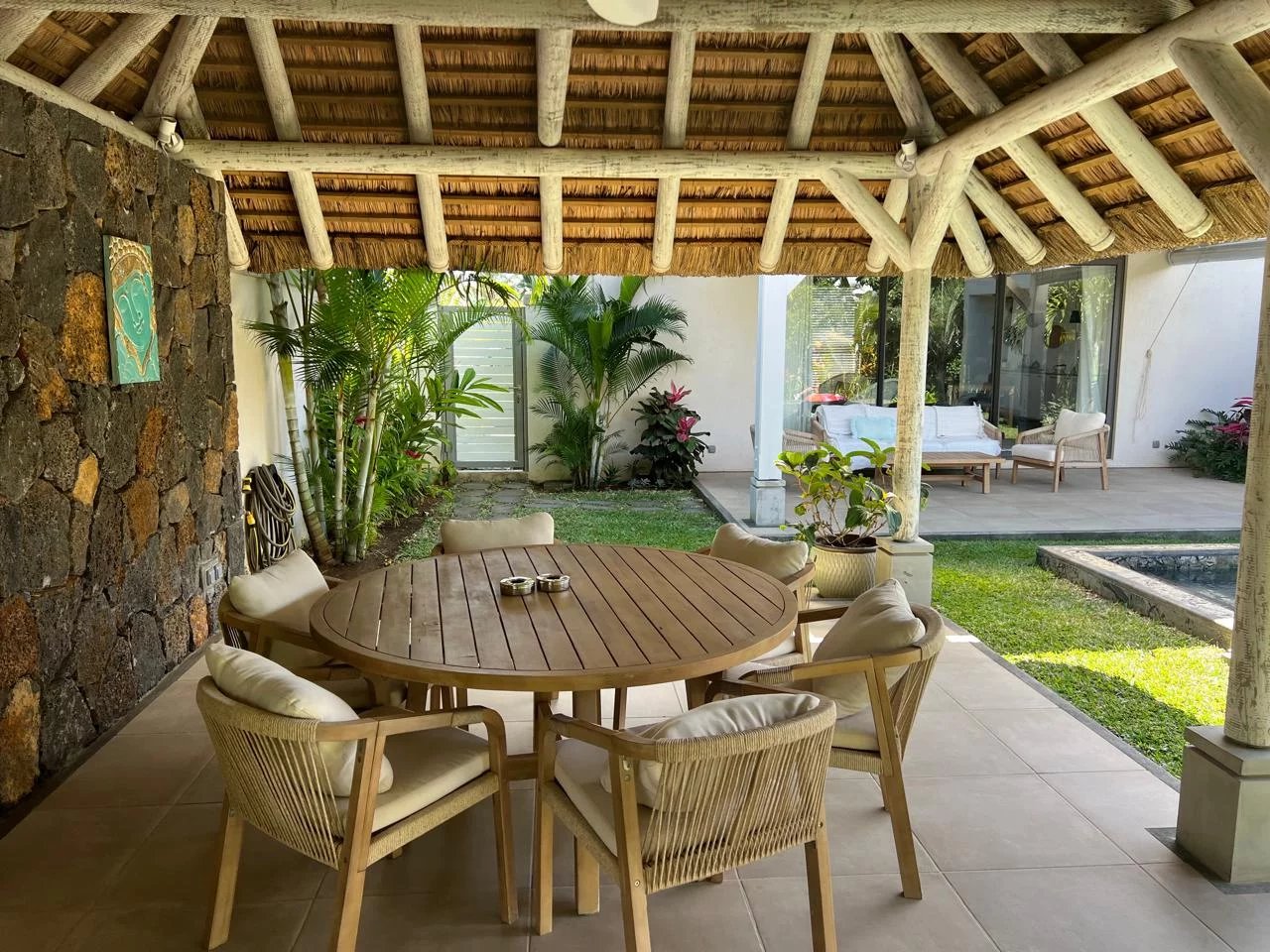 À l’extérieur, vous profiterez d’un jardin arboré, d’un kiosque parfait pour les moments de détente ou repas en famille, ainsi qu’une piscine privée.